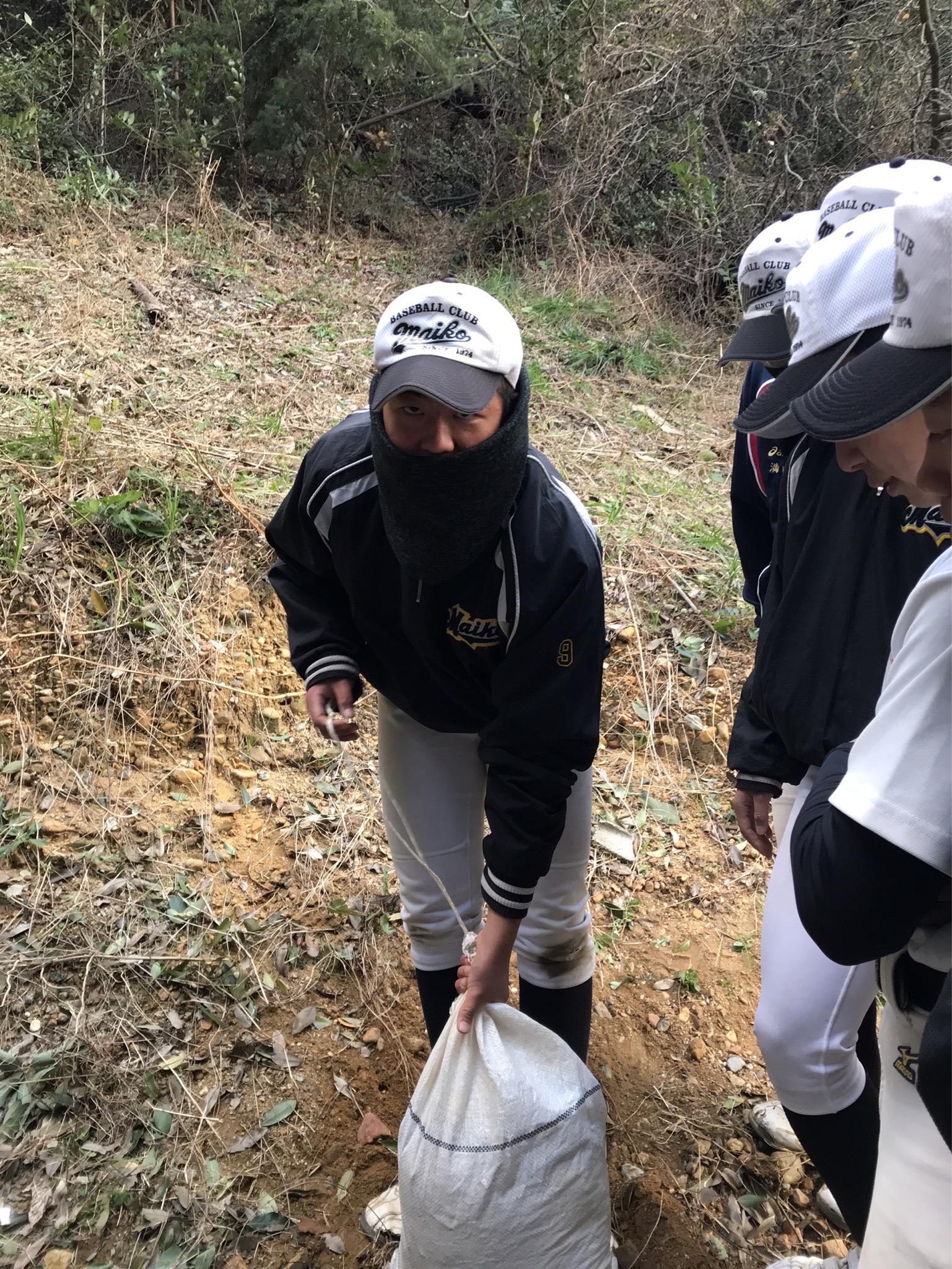 部員に対して土のうの作り方を説明し、実際にやってもらった。そ れから学校の備蓄倉庫や防災に関係する場所を案内するツアーを開催した。人に教えること、伝えることの大変さを痛切に感じた。