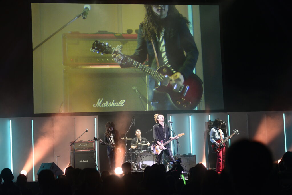 プラネタリウムが映し出されていた幕が降りると、そこに現れたのはロックバンドWENDY。軽快なロックサウンドで会場を盛り上げます。